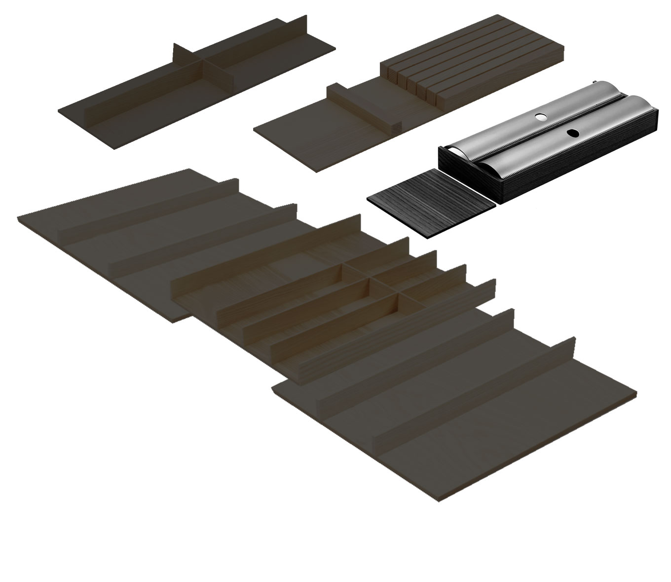 —КОМПЛЕКТ лоток + делитель + держатели для фольги и для ножей, ФайнЛайн Линик 1000-1200 мм, глубина 500 мм, цвет ЯСЕНЬ черный Kessebohmer