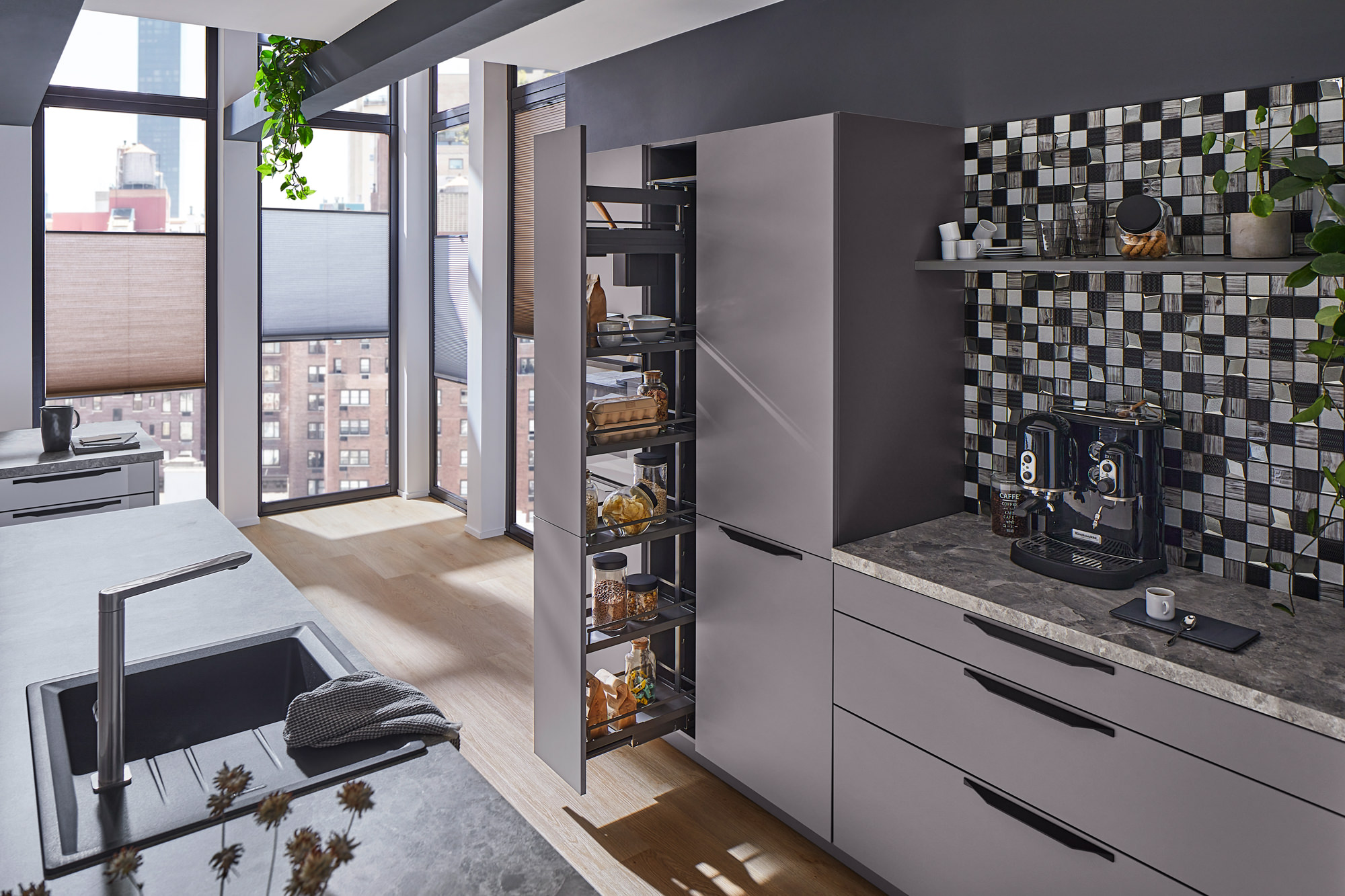 Прямые линии кухонного дизайна с полками Арена СТИЛЬ Kessebohmer в Кемерове