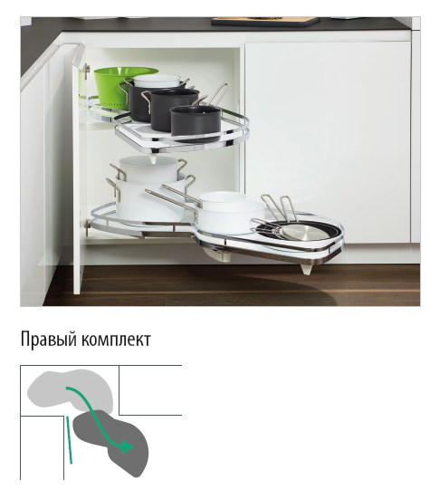 Комплект полок правый, Леманс 400 мм, Арена ПЬЮР, 2 полки + рычаги, цвет АНТРАЦИТ Kessebohmer | официальный магазин