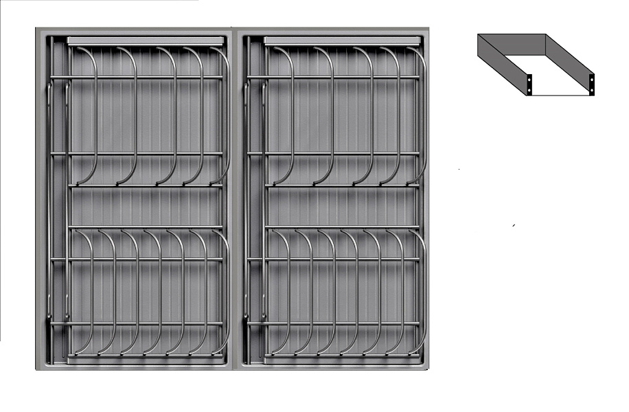2 модуля для посуды большие (423 x 248 мм, каждый модуль состоит из 1 х держатель металлический, 1 х поддон пластиковый, 2 х защелка-ограничитель)