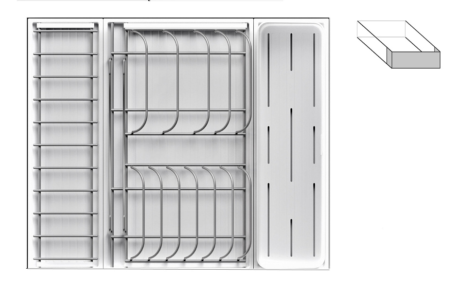 - 1 большой модуль для посуды + 1 малый модуль с решеткой + модуль для столовых приборов