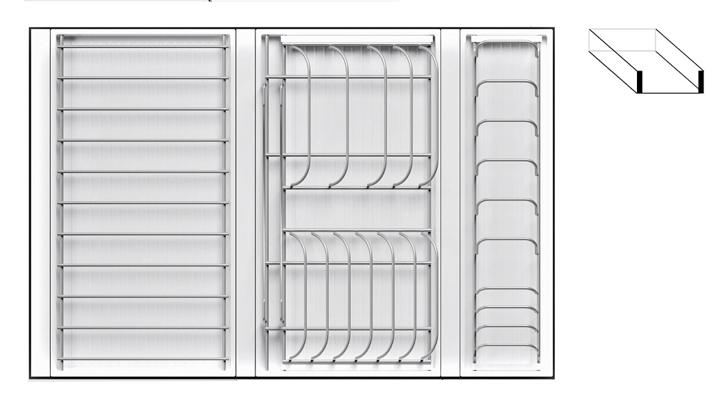 • 1 большой модуль для посуды + 1 малый модуль для посуды + 1 малый модуль с решеткой