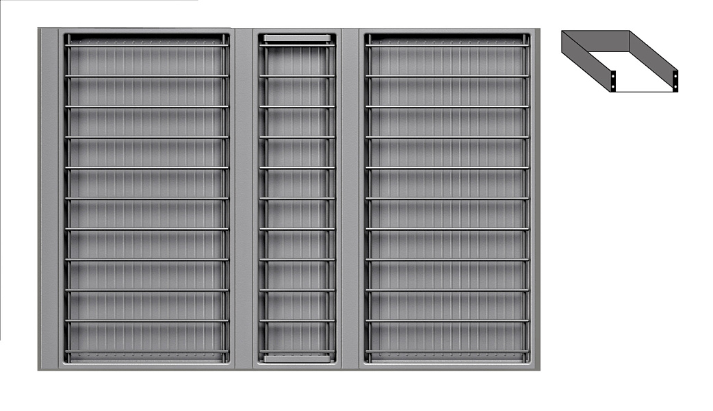 • 1 большой модуль для посуды + 1 малый модуль для посуды + 1 малый модуль с решеткой