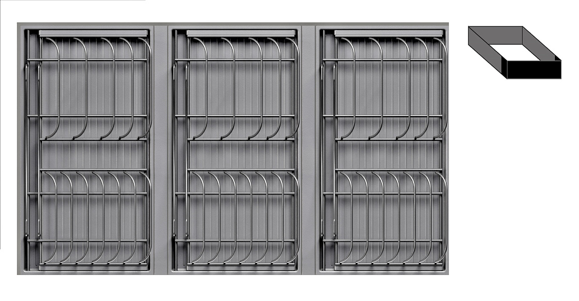 3 модуля для посуды большие (каждый модуль 423 x 248 мм, состоит из 1 х держатель металлический, 1 х поддон пластиковый, 2 х защелка-ограничитель)