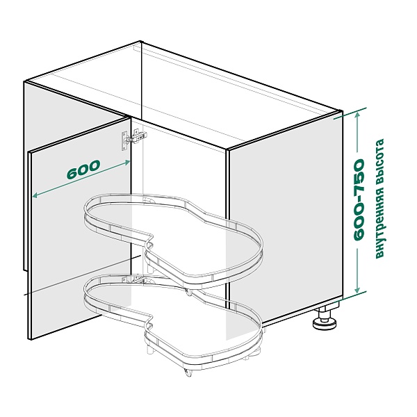 Комплект полок правый, Леманс 600 мм, Арена ПЬЮР, 2 полки + рычаги, цвет АНТРАЦИТ, цвет дна Антрацит, антислип (2603969846)