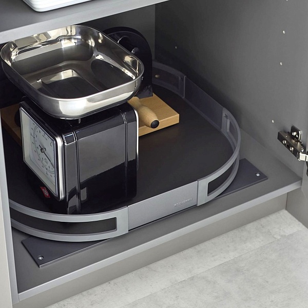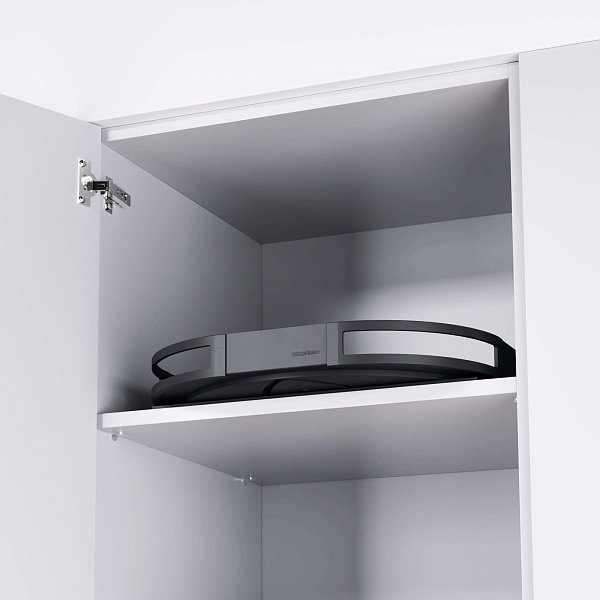 TurnMotion III основан на идее перемещения: металлическая полка может вращаться на 360 градусов, так что предметы хранения оказываются в центре внимания со всех сторон именно тогда, когда это необходимо. Поэтому TurnMotion III является идеальным органайзером для шкафа. Все знают эту проблему: как только что-то оказывается в задней части шкафа для кладовых на встроенной полке, до него трудно добраться без лестницы и трудоемкой перестановки, и поэтому о нем быстро забывают. С TurnMotion III пространство для хранения используется оптимально, и запас всегда на виду.