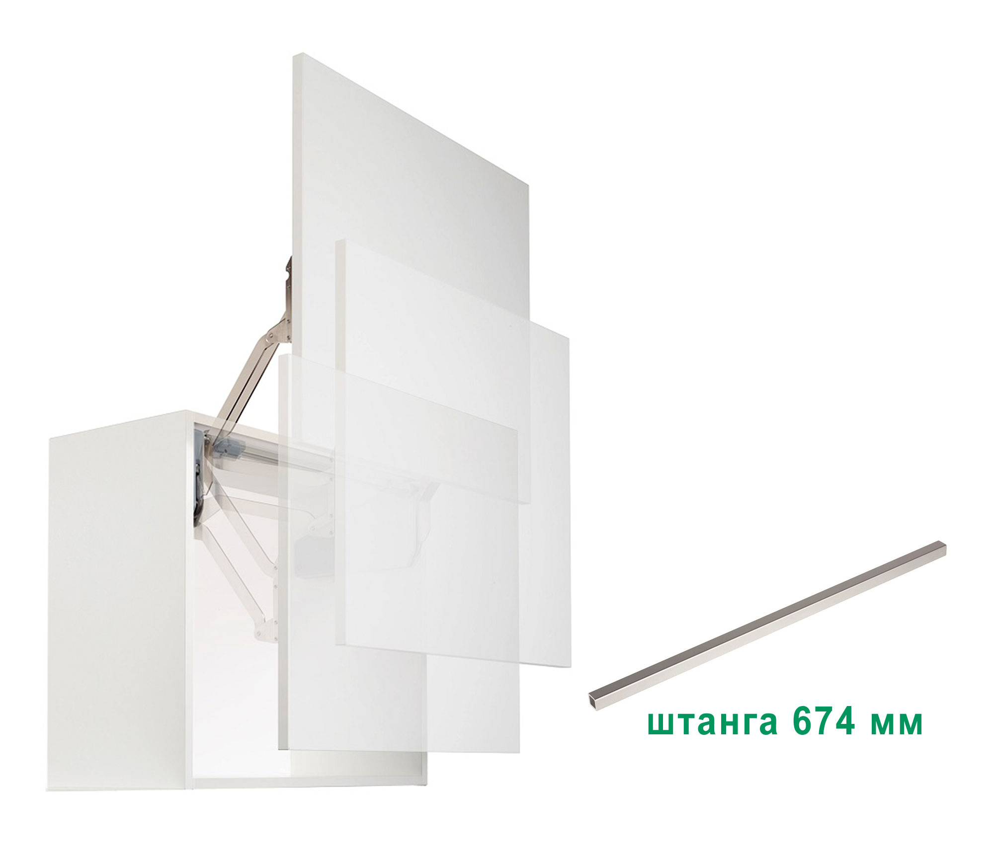 При выборе максимальной ширины фасада 800 мм в комплект добавляется штанга 674 мм
