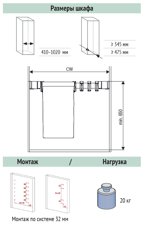 Инструкция по установке Комплект Держатель выдвижной D 475 мм Конеро: с вешалками / с мешком для белья 6 мб