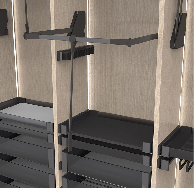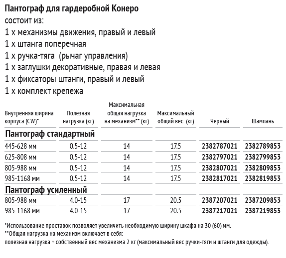 Пантограф для гардеробной стандартный Конеро W 625-808 мм нагрузка 0,5-12 кг цвет ЧЕРНЫЙ Kessebohmer | официальный магазин
