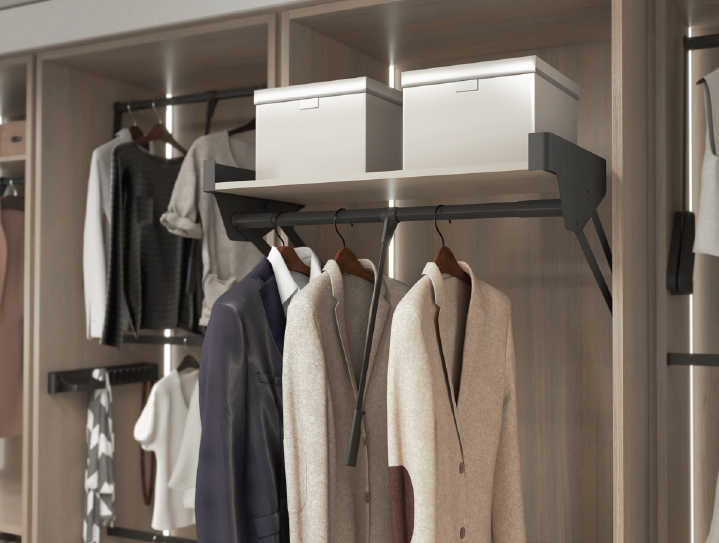 Пантограф с полкой в гардеробную Конеро состоит из: