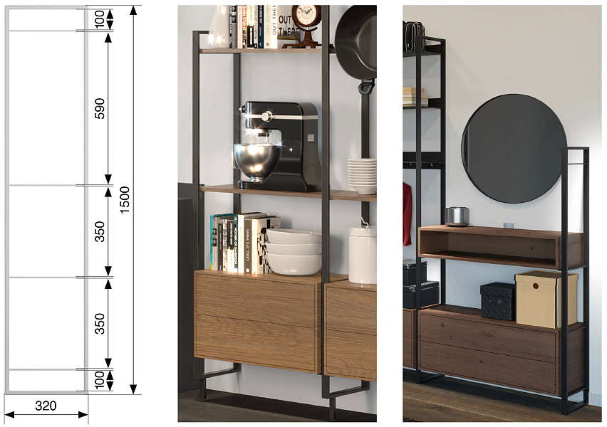 —Рама из стального профиля для стеллажных систем 30x320x1500 мм, Юкей, цвет ЧЕРНЫЙ Kessebohmer