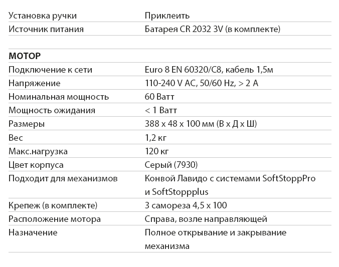 Подходит для механизмов: Конвой Лавидо с системами SoftStopPro и SoftStoppplus