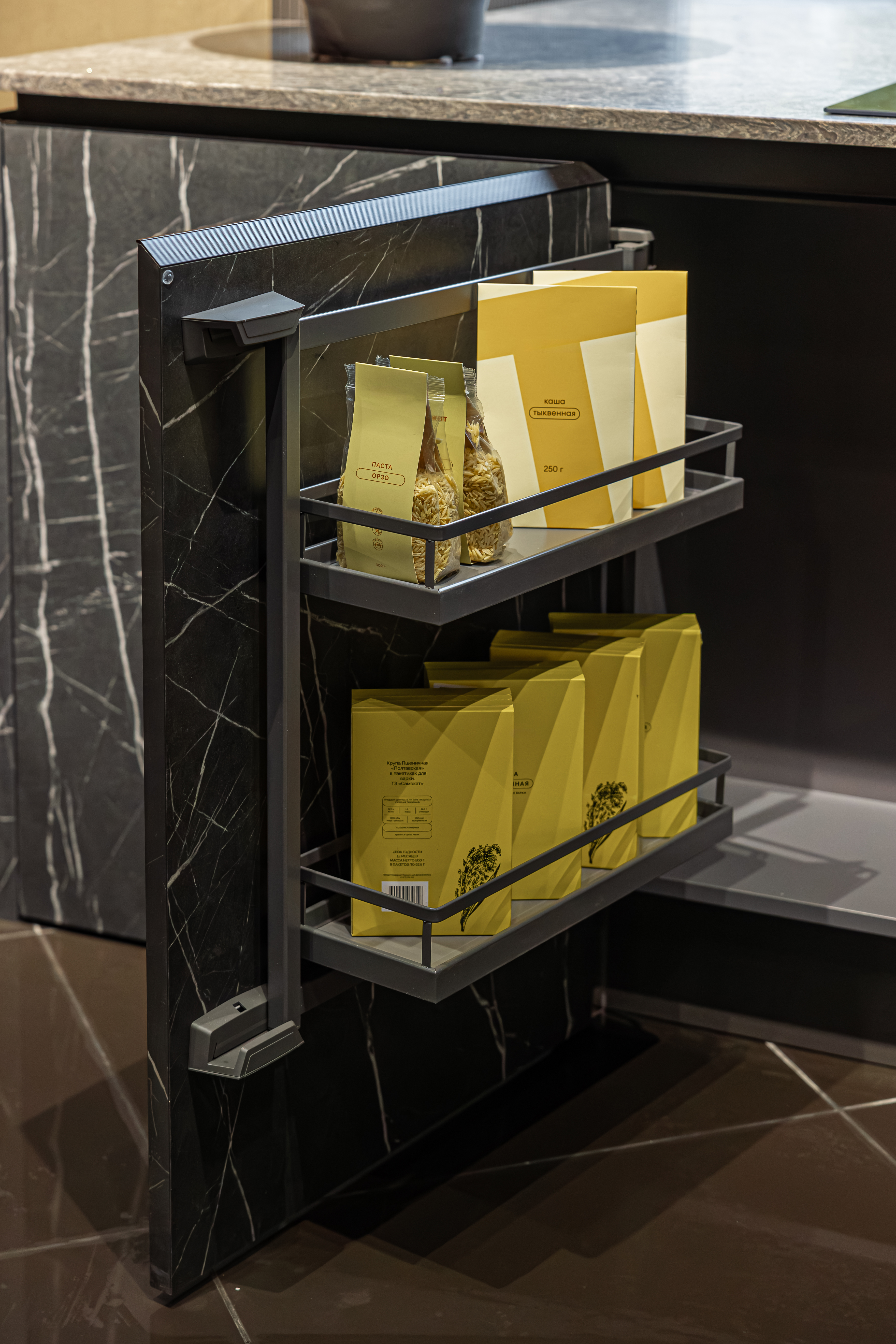 Прямые линии кухонного дизайна с полками Арена СТИЛЬ Kessebohmer в Кемерове