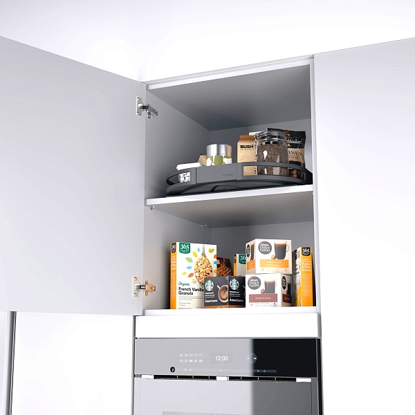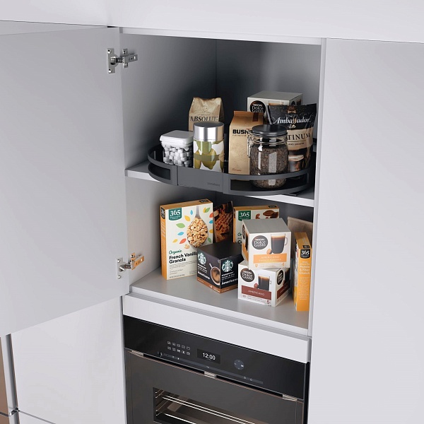 Все видно в шкафу для хранения продуктов: доберитесь до самых дальних углов с помощью вращающейся выдвижной полки TurnMotion IIITurnMotion III основан на идее перемещения: металлическая полка может вращаться на 360 градусов, так что предметы хранения оказываются в центре внимания со всех сторон именно тогда, когда это необходимо. Поэтому TurnMotion III является идеальным органайзером для шкафа. Все знают эту проблему: как только что-то оказывается в задней части шкафа для кладовых на встроенной полке, до него трудно добраться без лестницы и трудоемкой перестановки, и поэтому о нем быстро забывают. С TurnMotion III пространство для хранения используется оптимально, и запас всегда на виду.